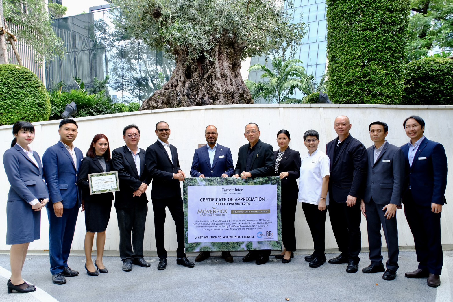 กรุงเทพฯ – บริษัท ทีซีเอ็ม คอร์ปอเรชั่น จำกัด (มหาชน) หรือ TCMC มอบเกียรติบัตรให้แก่ โรงแรมเมอเวนพิค บีดีเอ็มเอส เวลเนส รีสอร์ท กรุงเทพ เพื่อแสดงความขอบคุณที่เลือกใช้ผลิตภัณฑ์และบริการที่เป็นมิตรต่อสิ่งแวดล้อม โดยเฉพาะการสนับสนุนการใช้ พรมแผ่น EcoSoft® ภายใต้แบรนด์ Carpets Inter และการเข้าร่วมโครงการ “Re3” ซึ่งเป็นโครงการนำพรมหมดอายุการใช้งานกลับมาบริหารจัดการอย่างถูกวิธีและเป็นมิตรต่อสิ่งแวดล้อม